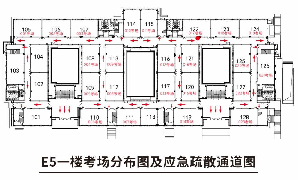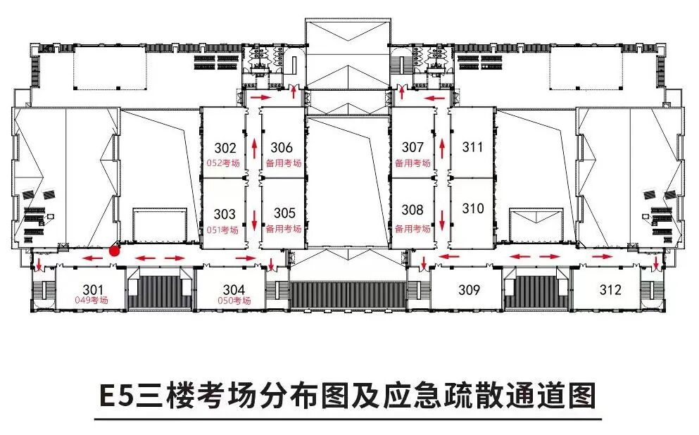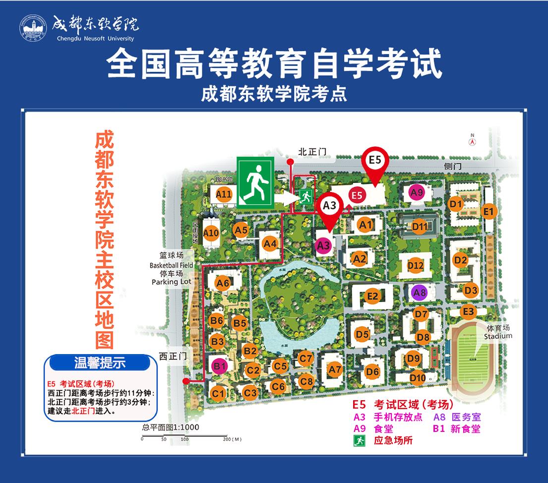 考生入场前需先在指定地点(A3教学楼)存放手机后前往E5考场通过智能安检门检查,请预留充足时间,提前到达考点。