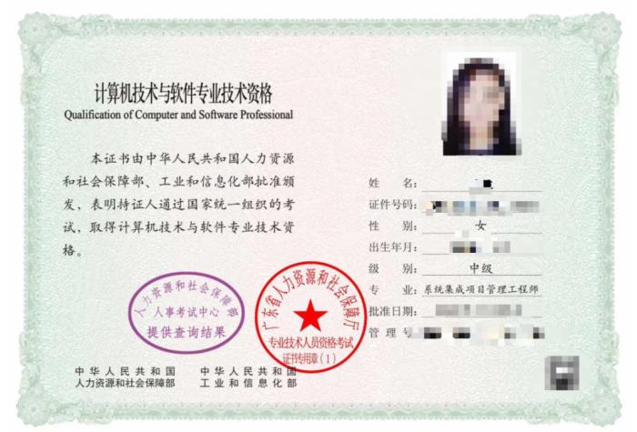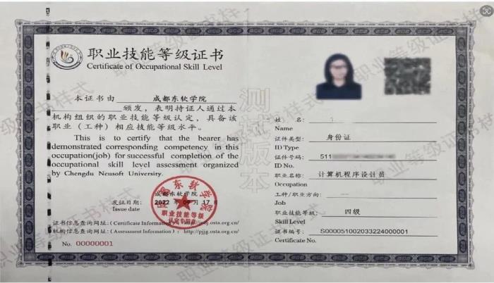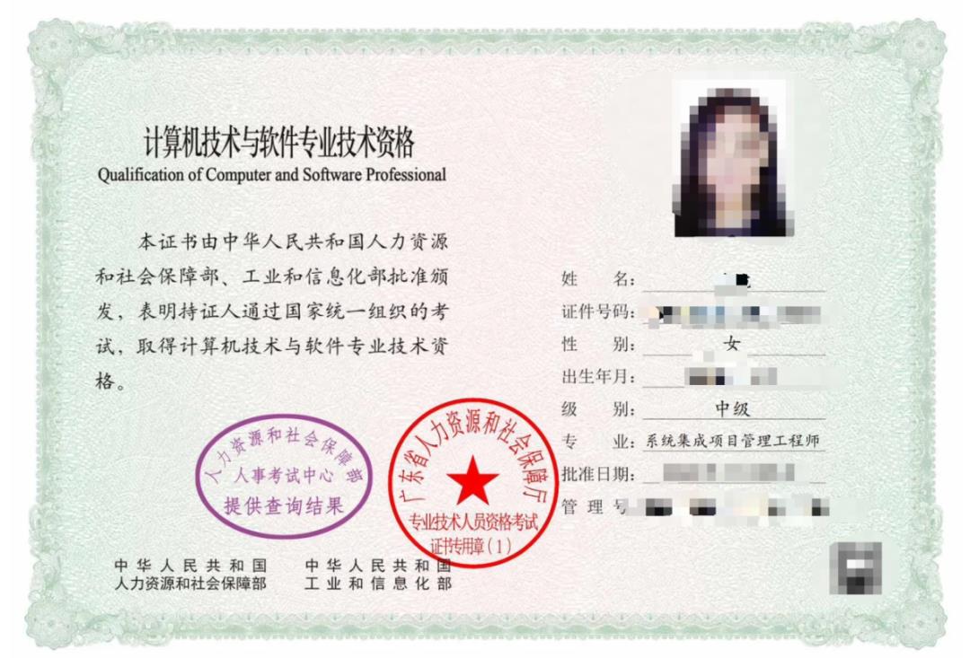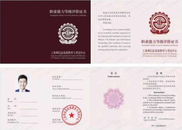 ♦国家权威部门认证:证书盖有中华人民共和国人力资源和社会保障部、工业和信息化部两个国家级部委的红色印章,代表了最高的官方认可。证书在全国范围内有效,终身有效,无需注册续期。